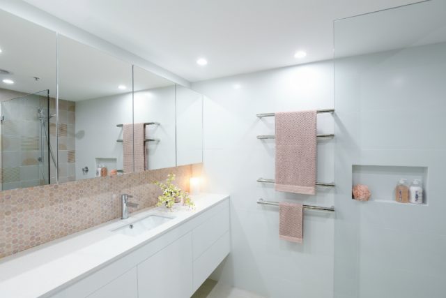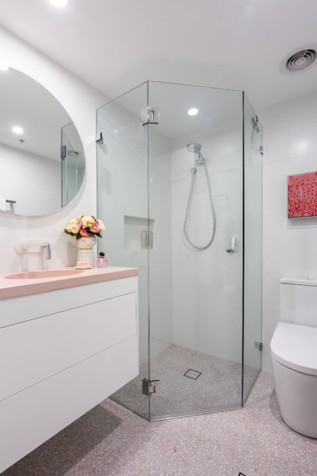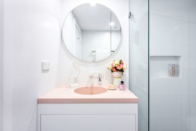 Colourful, feminine and playful – these may be the words that spring to mind when you see these bathrooms. Located in the chic inner west Sydney apartment, these bathrooms embody the spirit of their fun and stylish owners. Although small in size, the bathrooms pack plenty of punch with their trendy colours and modern fixtures.