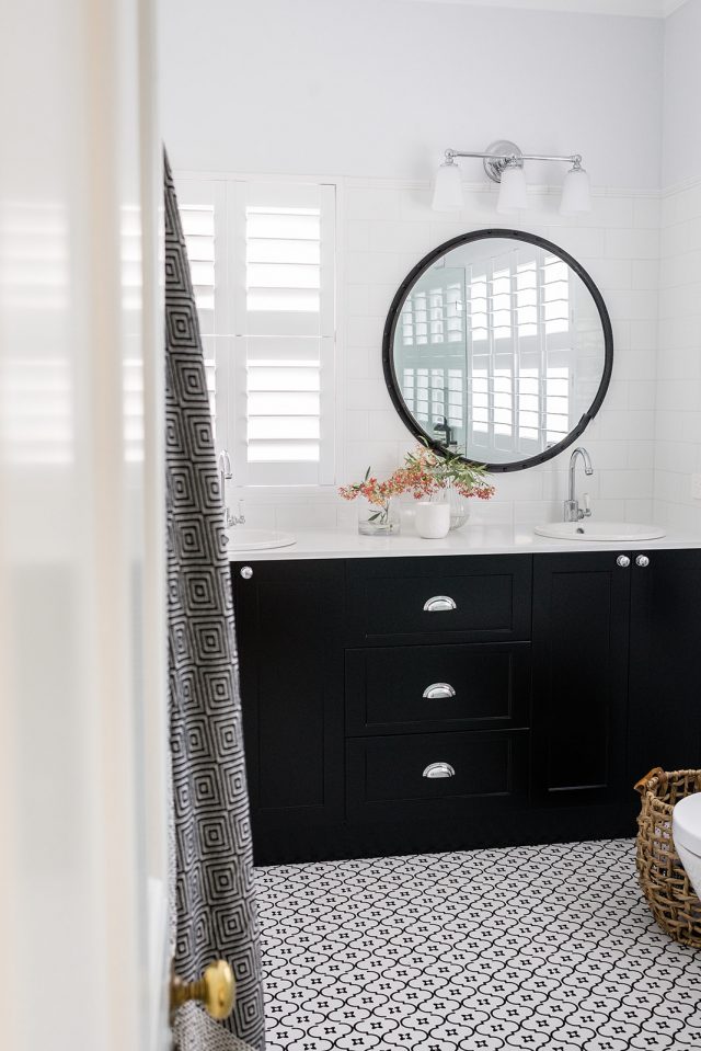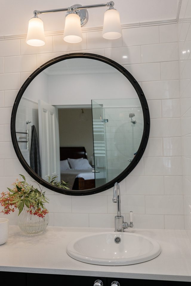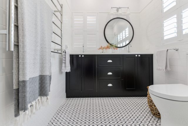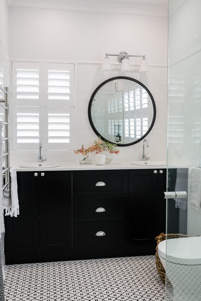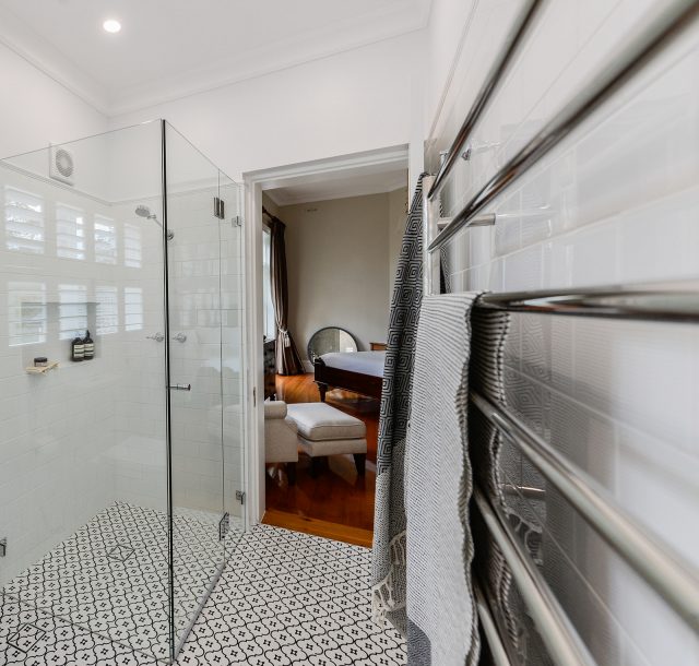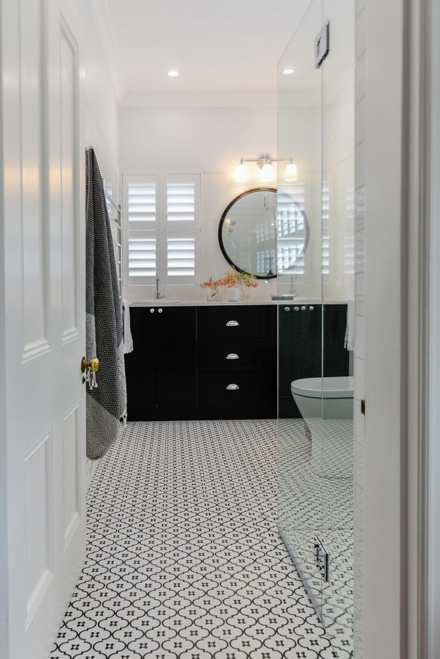 Our client wanted to update the bathrooms in traditional style, so they could complement the beautiful interiors of the old traditional house circa 1890. We created classical timeless design by using monochromatic colour scheme and heritage inspired fittings that were perfect for traditionally styled bathrooms. Chrome finish and gentle curves of the gooseneck tapware complement the classic aesthetic of the design, while floor mounted bath mixer brings old world charm into the space while remaining functional with the use of the hand shower. The classic white subway tile adds to the vintage feel and helps to brighten the bathrooms by reflecting the light, and patterned porcelain tiles enrich the beauty of the traditionally styled bathrooms.