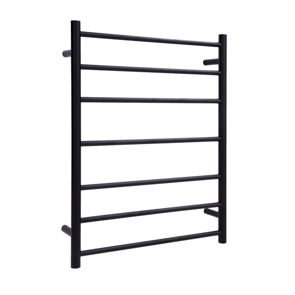 Thermorail Matt Black Round Profile Heated Towel Rail – W600xH800xD122 / 7 Bars