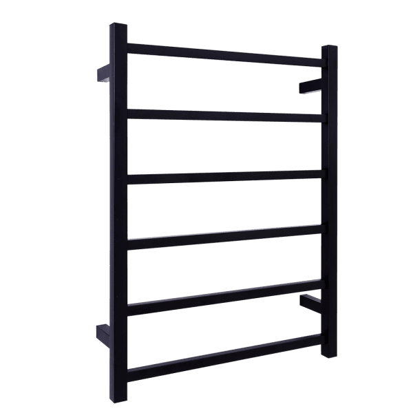 Thermorail Matt Black Square Profile Heated Towel Rail – W600xH800xD120 / 6 Bars